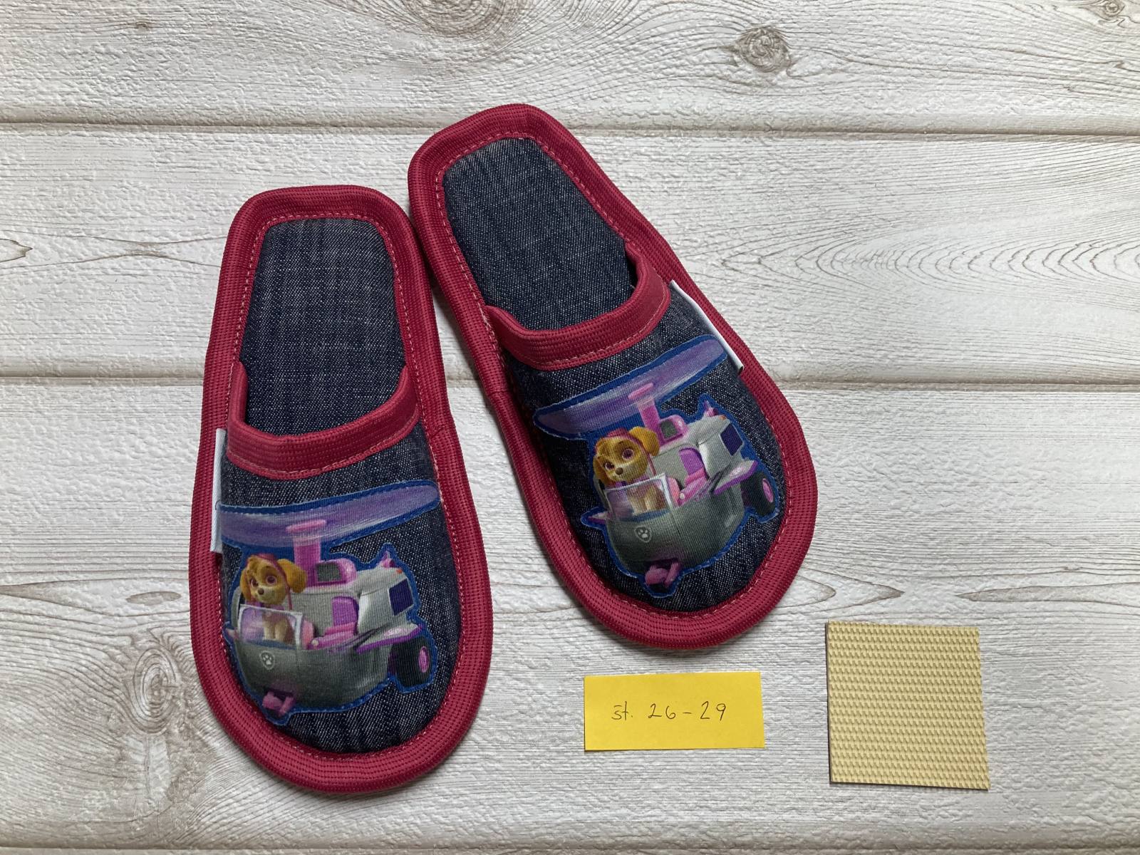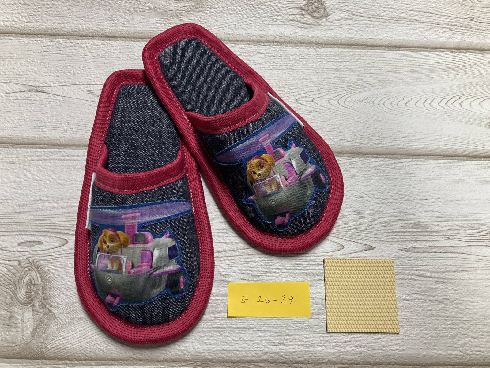 Otroški copati s priljubljenim motivom Tačk na patrulji. Copati so ročno narejeni v Sloveniji in so unikatni izdelek. Narejeni so troplastno in imajo podplat iz nedrseče gume.