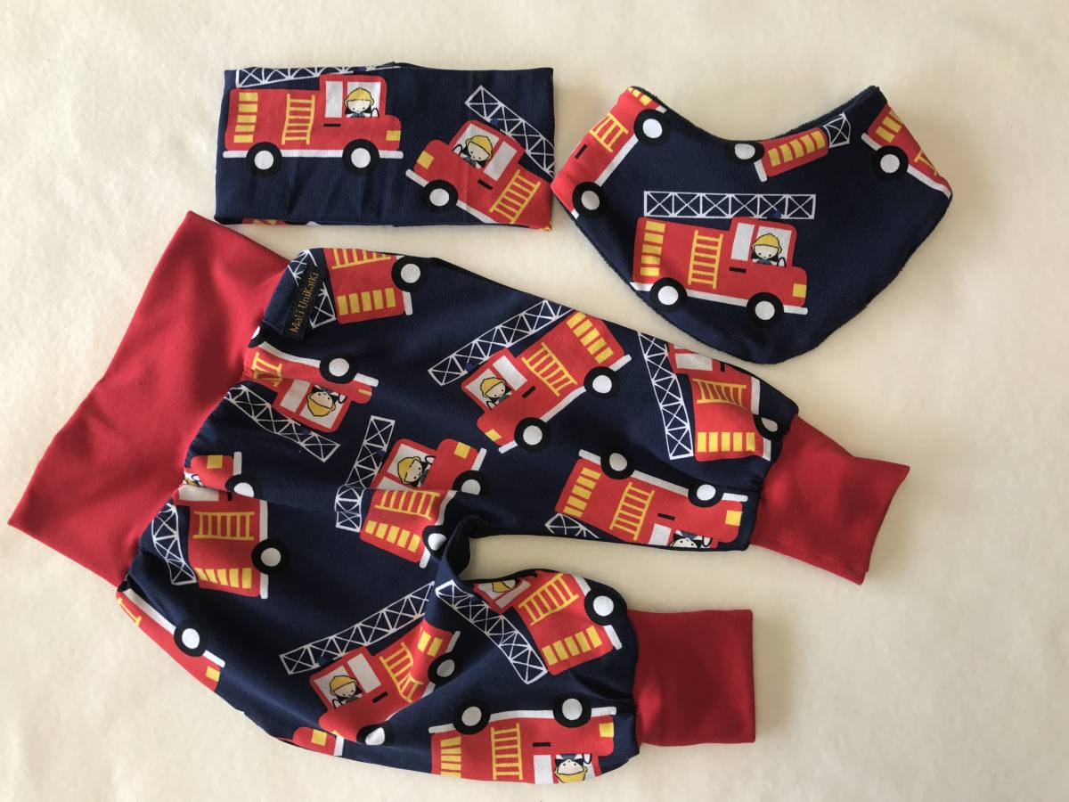 Otroški kompletek je sestavljen iz super mehkih in udobnih hlačk, traku za pokrivanje ušesk vašega malčka in ovratne rutke, ki bo dodala modni videz. Hlačke se zelo dolgo časa nosijo saj rastejo skupaj z otrokom. Rutka zaščiti vrat in zelo priporočamo za uporabo pri povečanem slinjenju ali za zaščito pred vetrom.