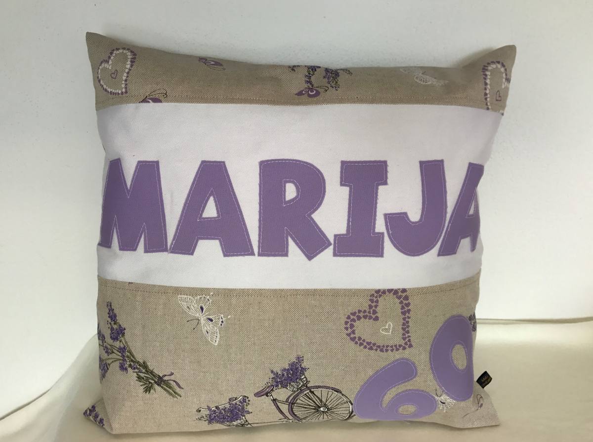 Ta unikatna okrasna blazina Marija 60 je primerna za darilo ob 60. rojstnem dnevu Marije. Spodaj lahko še dodate kuverto z voščilom ali € in zavijete. Možne različne kombinaceje blaga in imena, to pa vam naredimo po naročilu. Za več informacij nas lahko kontaktirate na info@maliunikatki.si in se vse dogovorimo.