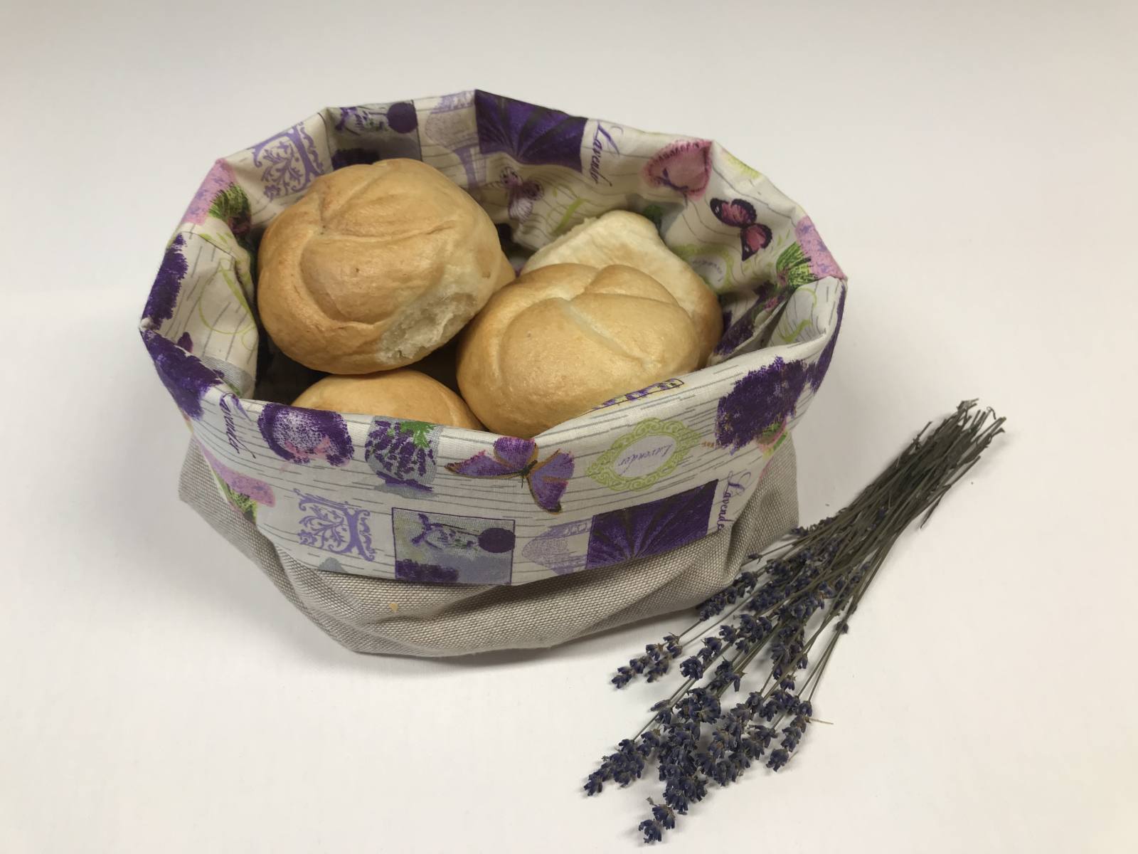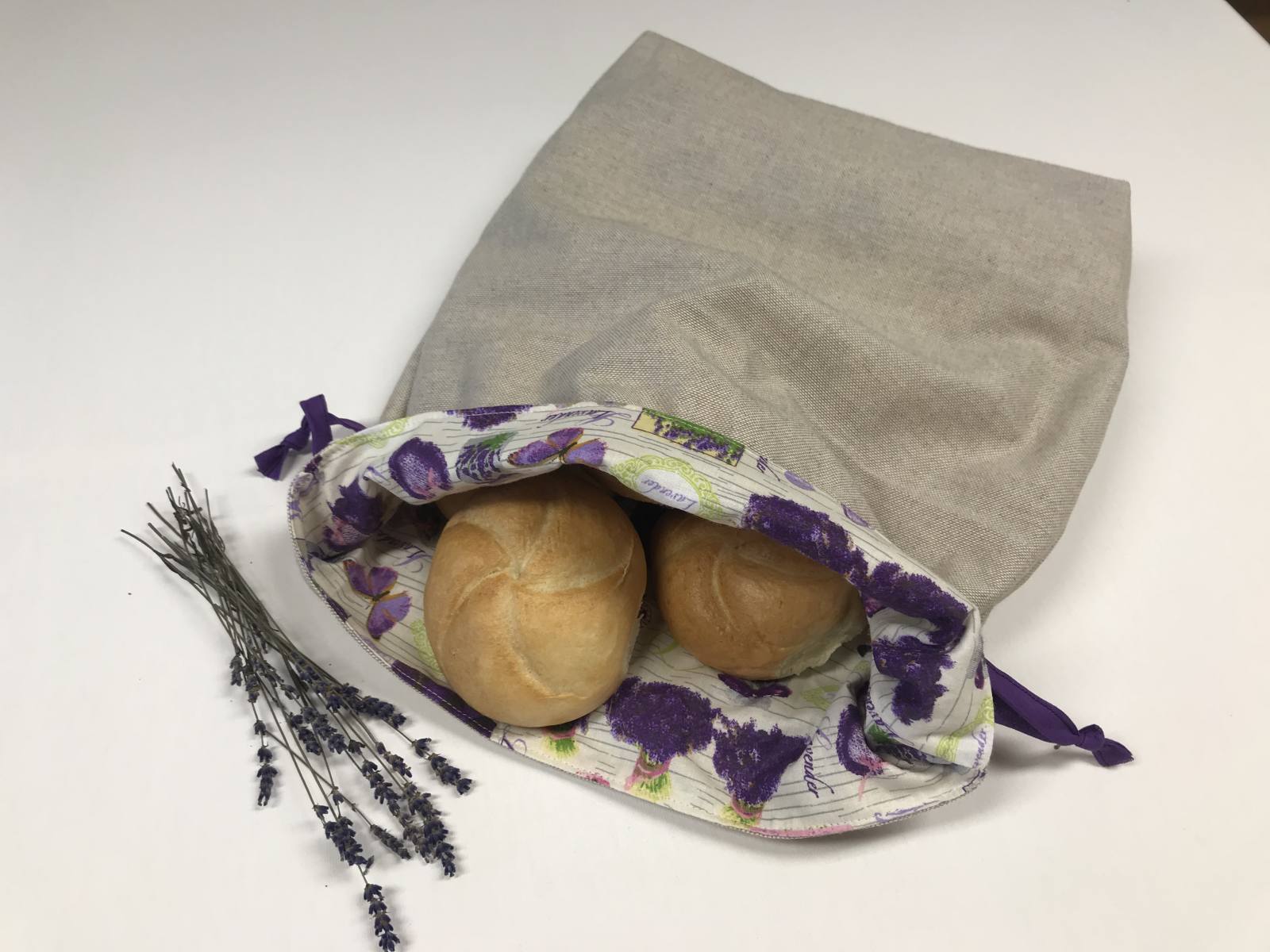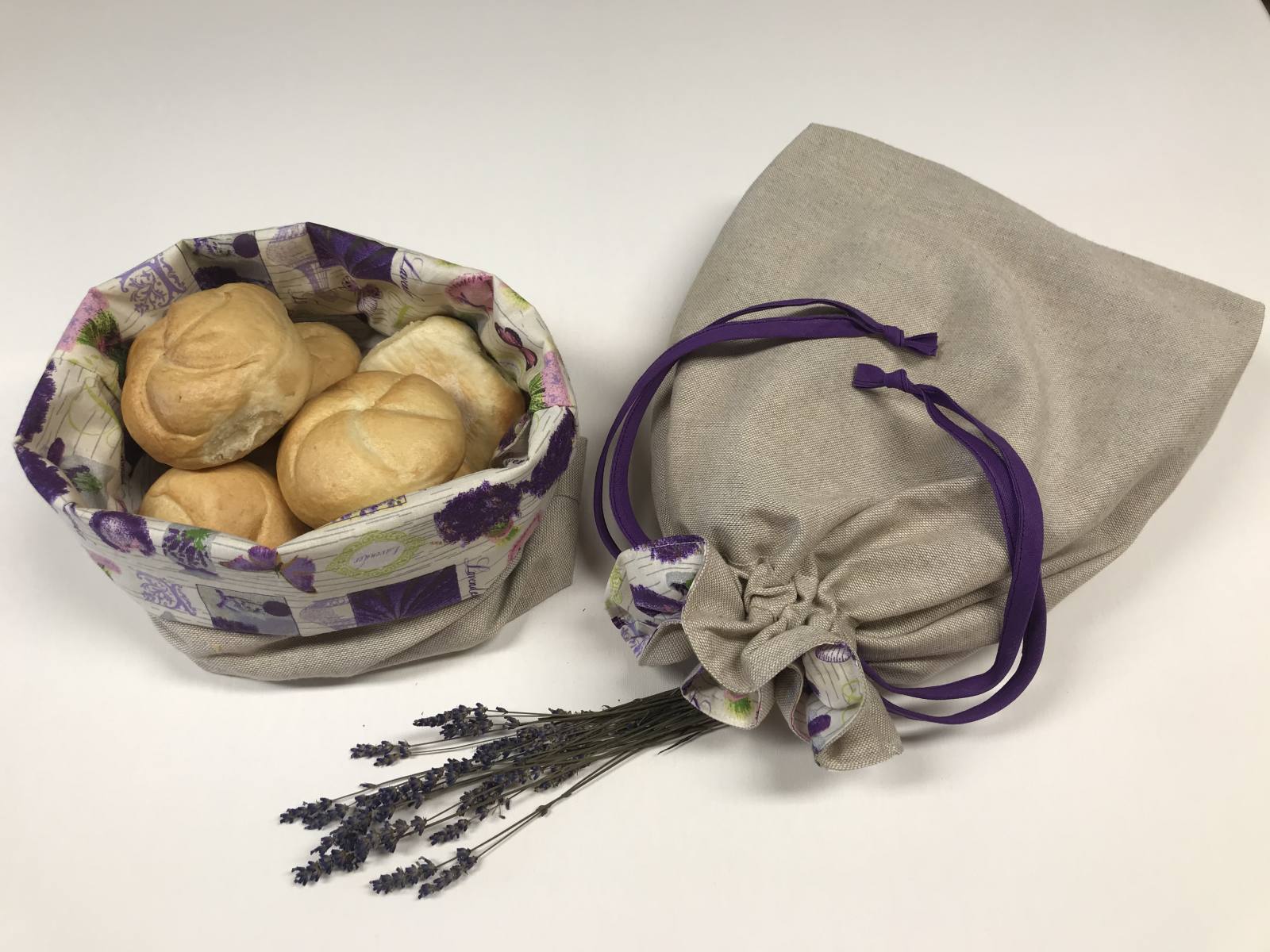 Vrečka / košarica za kruh je v velikosti cca 37x26x9 cm in se na vrhu zapira z trakom na poteg. Z vrečko greste lahko v pekarno po kruh. Ko pa kruh narežete ga pa lahko postrežete na mizi v košarici. Vrečke so trajnostne saj se lahko perejo in ponovno uporabljajo. Ročno šivano in narejeno v Sloveniji.