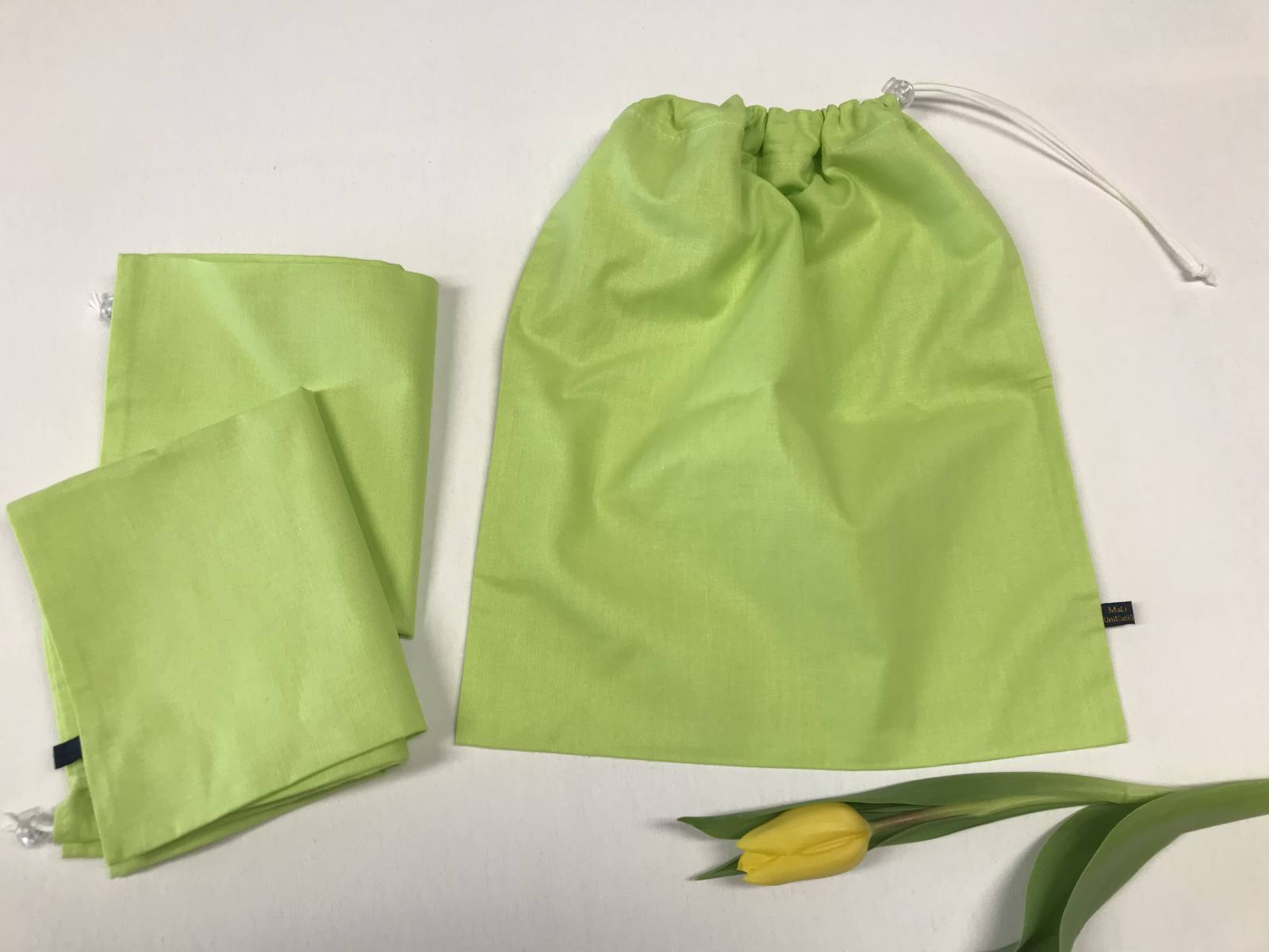 Vrečka je v velikosti 30x35cm in se na vrhu zapira z vrvico na poteg. Komplet vsebuje 3 vrečke, kot so na sliki. Priporočamo za shranjevanje copat, za v trgovino, za sadje in zelenjavo, za darilo ali drugi namen. Vrečke so za večkratno uporabo saj se lahko perejo. Ročno šivano in narejeno v Sloveniji.